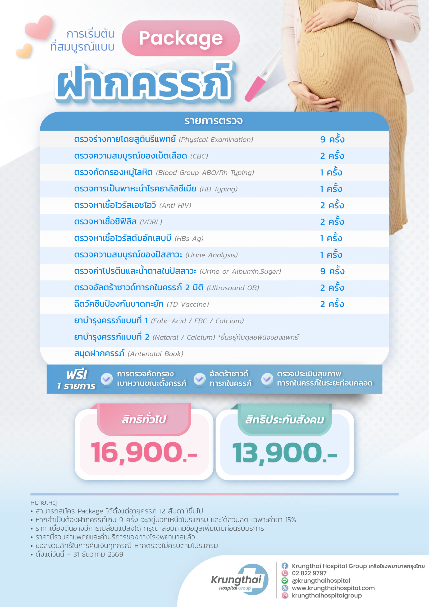 แพ็กเกจฝากครรภ์สิทธิทั่วไปราคา 16,900 บาท