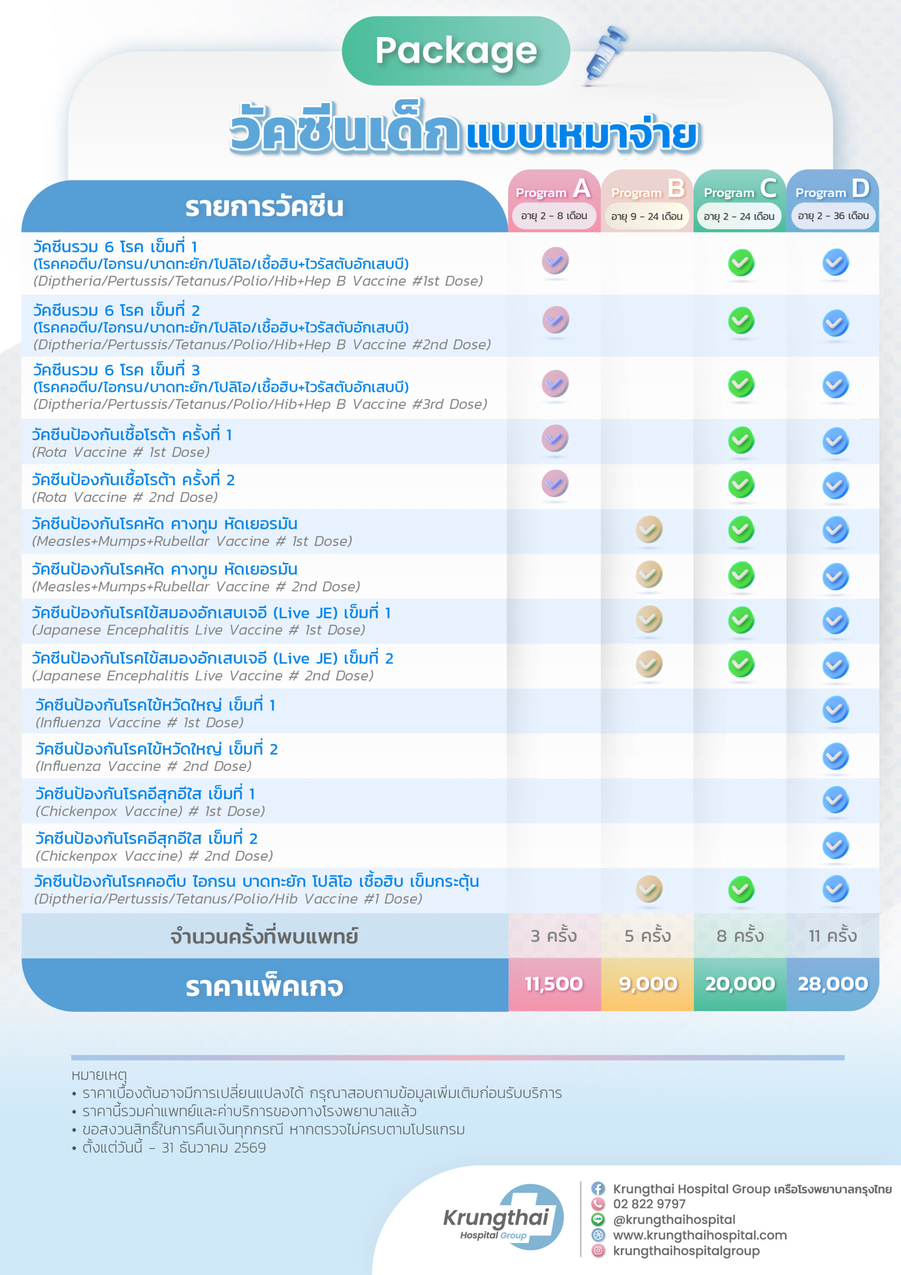 แพ็คเกจวัคซีนเด็ก (แพ็คเสริม) โรงพยาบาลกรุงไทย