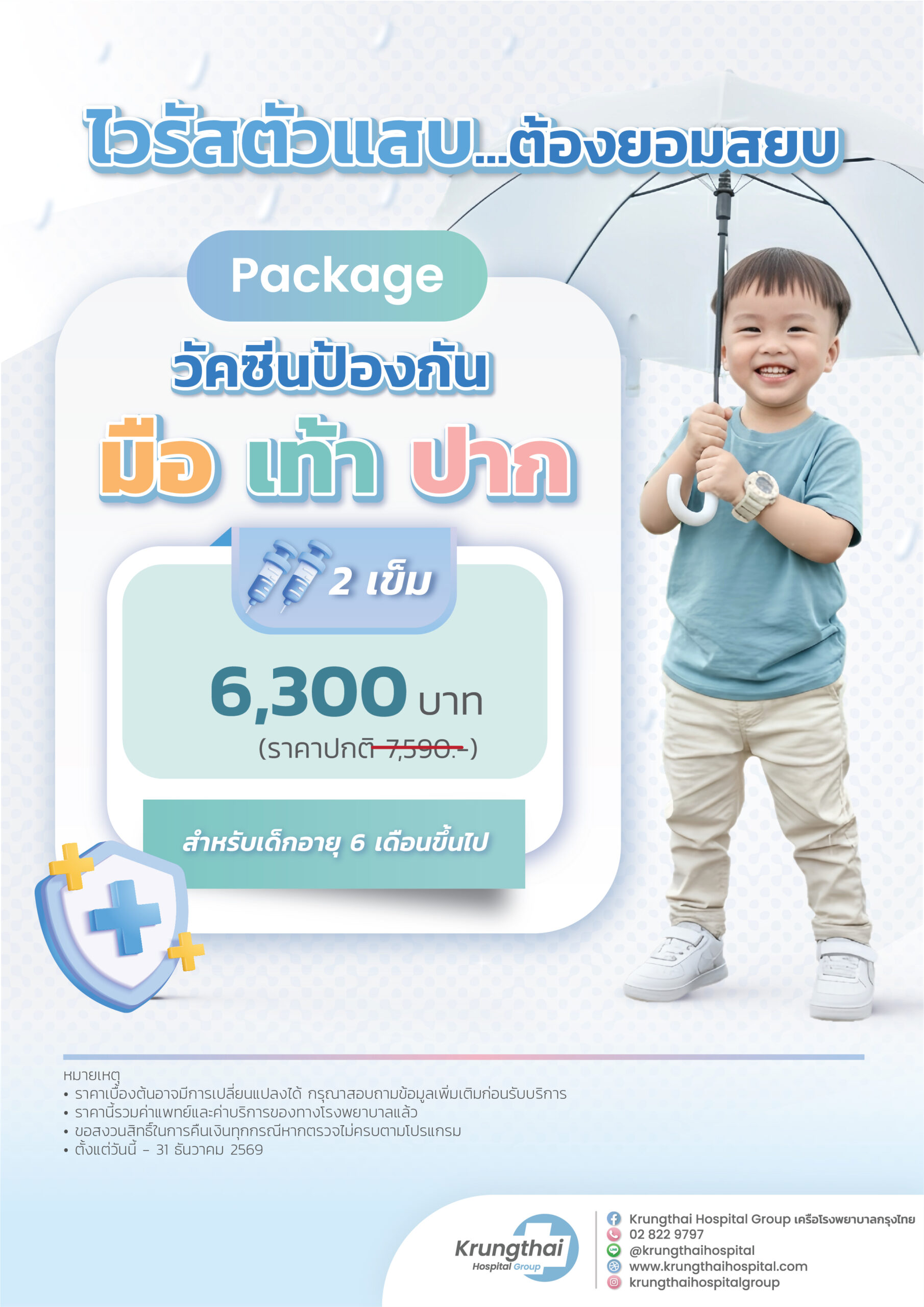 - วัคซีนป้องกัน มือ เท้า ปาก จำนวน 2 เข็ม ราคา 6,300 บาท