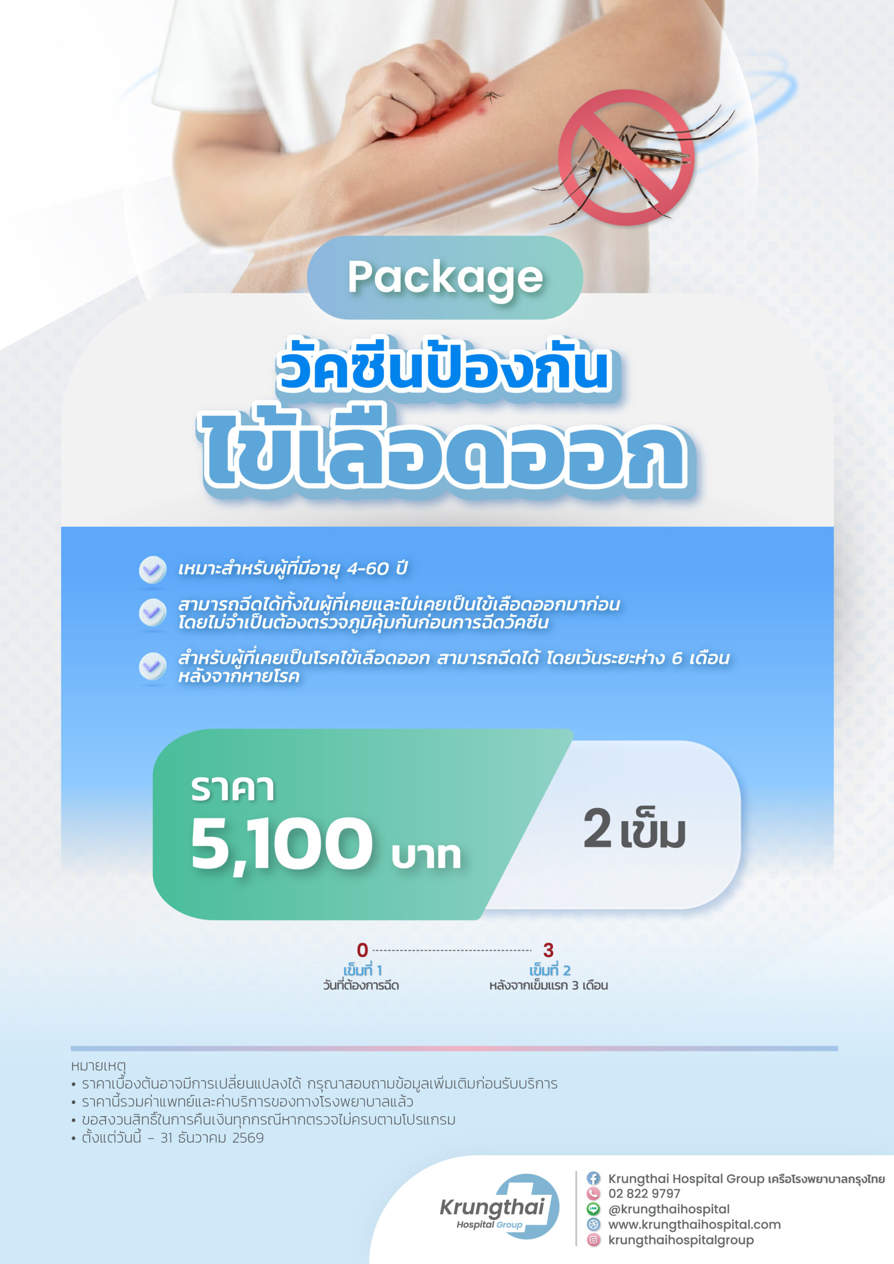 - วัคซีนป้องกันไข้เลือดออก จำนวน 2 เข็ม ราคา 5,100 บาท