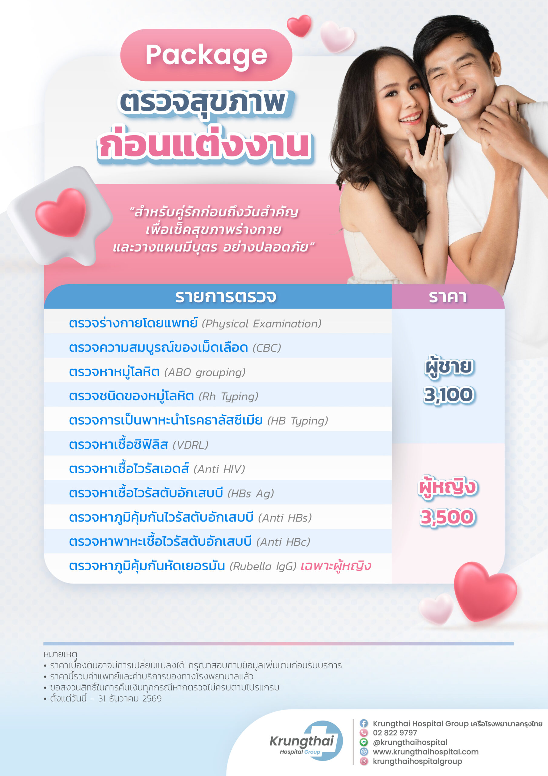 แพ็คเกจการตรวจสุภาพก่อนแต่งงาน/เตรียมพร้อมตั้งครรภ์ของ รพ.กรุงไทย ประกอบไปด้วย